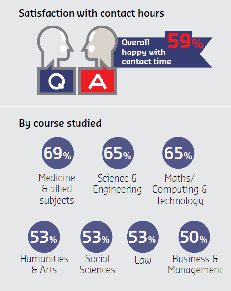 In one key respect, students are surprisingly satisfied; just under 60 per cent of students across all subjects said that they were happy with the number of contact hours they have with their teachers, and only 34 per cent said that they did not have enough lessons.