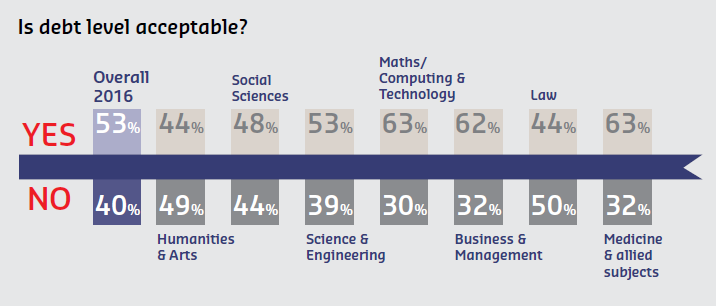 Despite this frugality, there has been a significant increase in how much debt students expect to graduate with, and also in the number of students saying that their expected level of debt is unacceptable given their future career prospects.