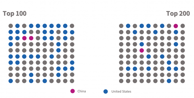 Compare this with the US, which has 40 in the top 100 and 60 in the top 200, or even a small nation like the Netherlands (7 in the top 100, 11 in the top 200), and it shows the journey that China still needs to make to be on a par with other higher education systems across the globe.