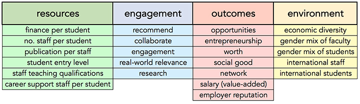 The Engagement pillar will focus on a worldwide survey of recent business school graduates, developed from the THE Student Survey used to power the WSJ/THE College Rankings. We will assess how much students have been intellectually engaged and challenged by their teaching, how they applied their learning to the real world, as well as examining key questions such as the quality of their interaction with staff and whether they would recommend their course to others.