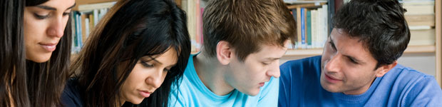 Four students working at desk