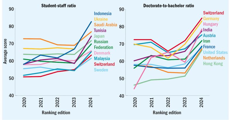 Tunisia and Ukraine also saw notable improvements in this metric, which comes under the teaching pillar for the World University Rankings.